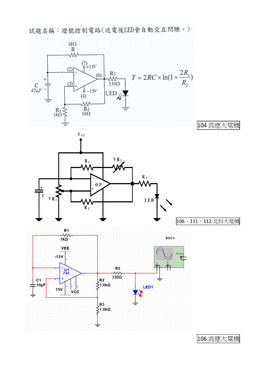 OP Amp方波產生器、北科大、高雄科大推甄實作試題