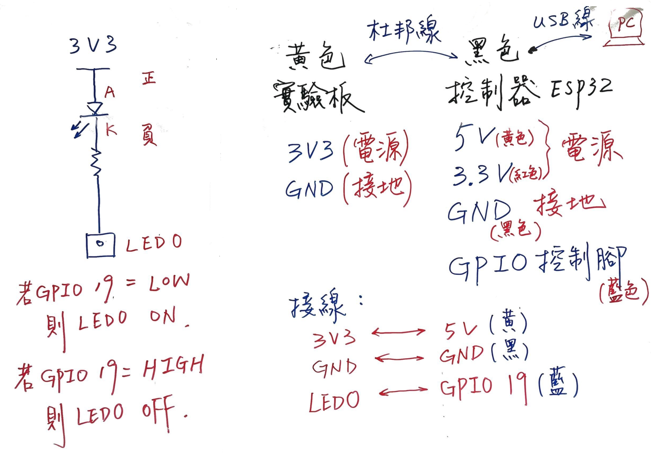 digitalWrite(19,LOW); //第19腳輸出LOW --> LED0 ON