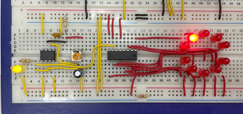 作業練習:請參考上述電路,設計一速度可調整的環形電子輪盤。