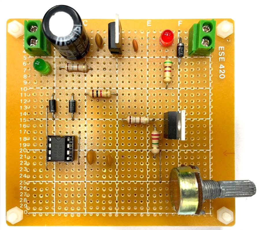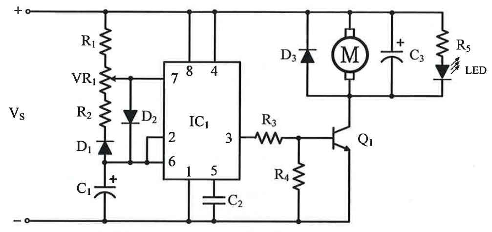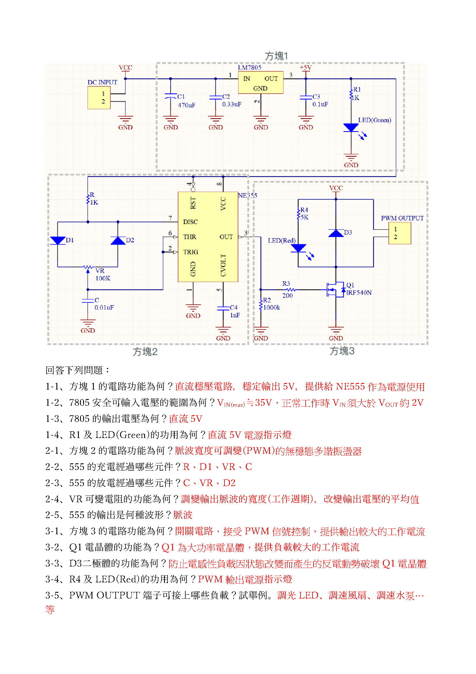 555 PWM控制電路、北科大推甄實作試題 2026-01-212026-02-25 hanmin 參考電路 實驗結果: 輸入電壓VCC = 10V,Ch1為555 IC第3腳的輸出脈波(黃),Ch2為NMOS反相器Drain端的輸出脈波(藍)。 112北科大電機推甄實作試題 105北科大電機推甄實作試題 控制115甲 陳易 105北科大電機推甄實作試題(555 PWM + DC Motor)