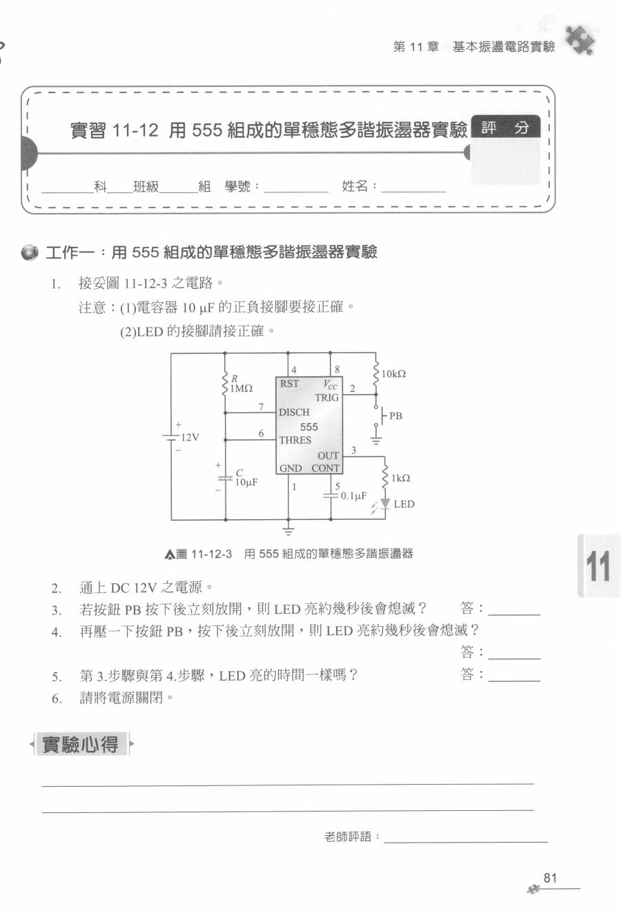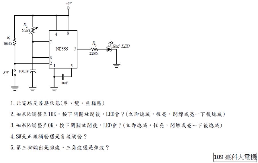 555單穩態振盪電路、台科大、高雄科大推甄實作試題
