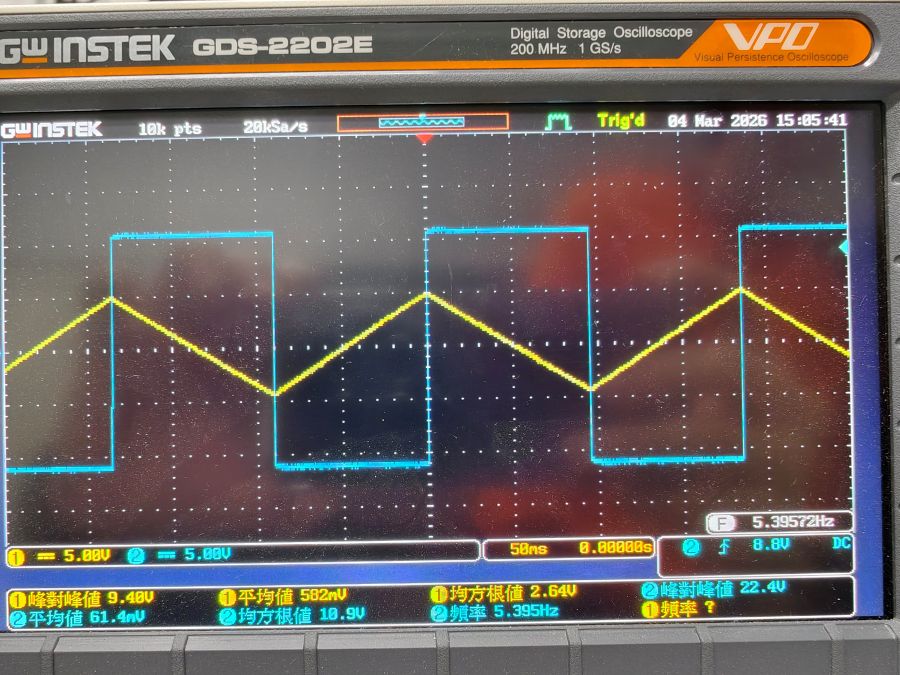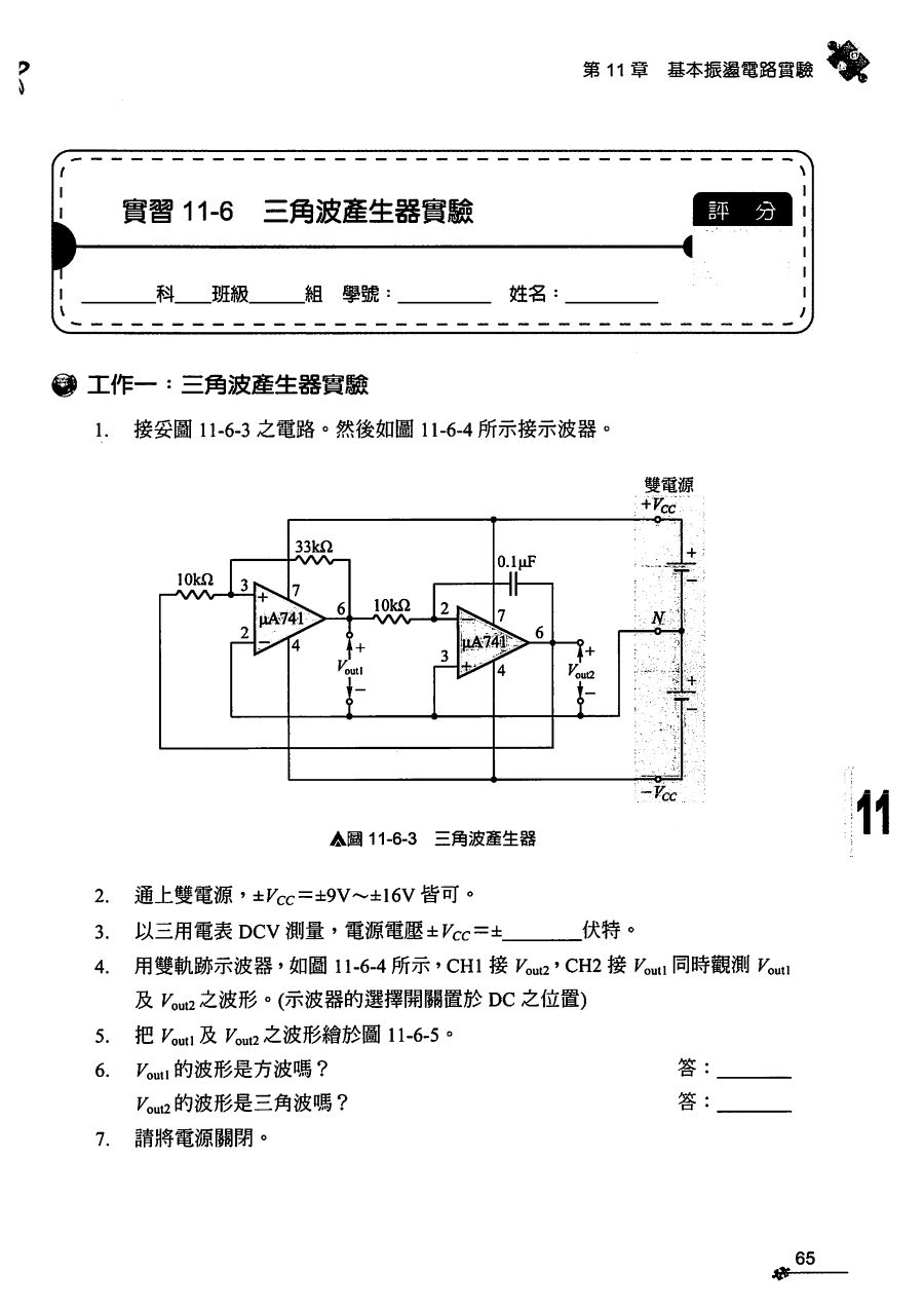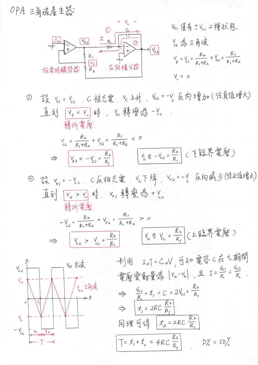 假設Vo(sat) ≒ 10.5V ,輸出三角波的參考數據如下: